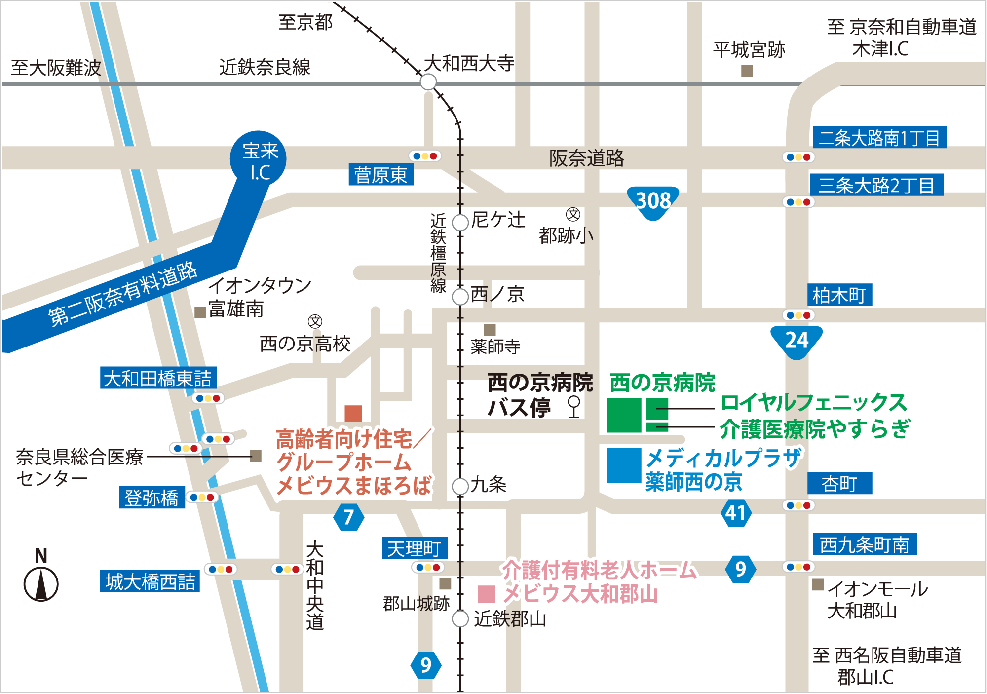 メビウス大和郡山・近鉄西ノ京駅・JR郡山駅(西口)・近鉄郡山駅 三の丸立体駐車場北側⇔西の京病院